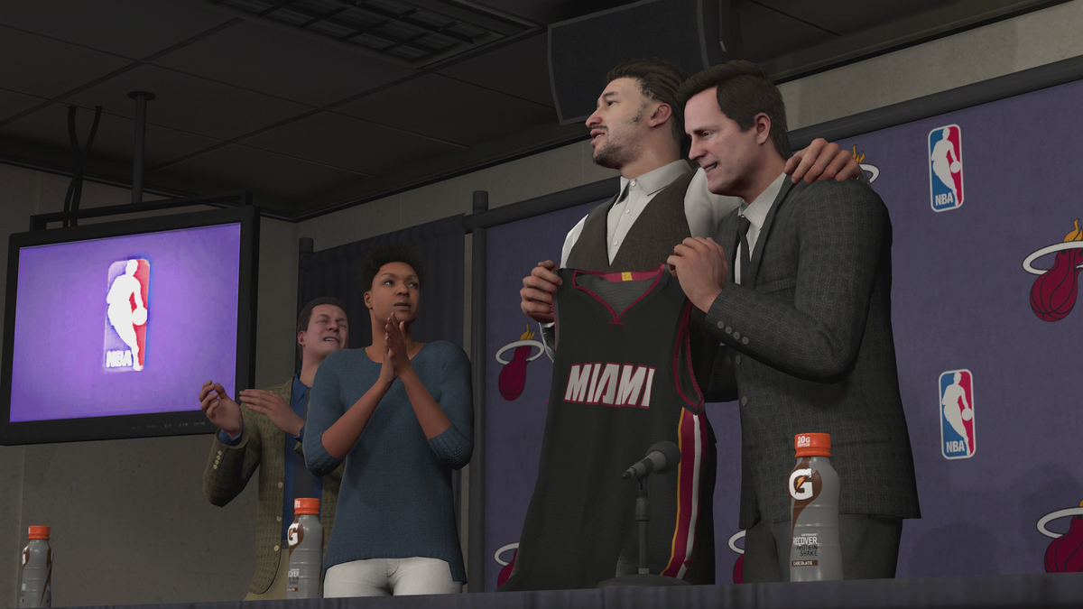 Pero eso, desgraciadamente, no es todo. Porque mi problema se extiende a la previa, al pre-draft y a todo intermedio posible que haya entre partido y partido. Algo que hay que achacar, como ya he dicho, a la inclusión de cinemáticas porque ahora, el que habla no soy yo, es un personaje inventado, yo jamás diría estas burradas ni me comportaría así. El hecho de que en una experiencia, cuyo punto fuerte era el sentir como tú eras el que alcanzaba la gloria en la NBA, se sienta una gran desconexión respecto a tu personaje, le quita gran parte del valor a la experiencia. Es decir, ahora el que se encuentra en el juego no es un avatar, ni una "representación virtual" de ti en el juego, sino un personaje que actúa y contesta de forma independiente. Demonios, ni siquiera puedes personalizar tu nombre en las últimas entregas... Puede que antes no hubiera cinemáticas, puede que todo se sintiera más vacío, pero al menos yo podía encargarme de rellenar esos huecos y fisuras que quedaban con mi (y espero que no suene muy cursi) imaginación. Y me apena que un modo de juego tan bueno y sobre todo tan inmersivo se haya visto lastrado por una actitud desganada y derrotista de 2k Studios, conscientes de las limitaciones y requerimientos necesarios para mantener fresco algo así.